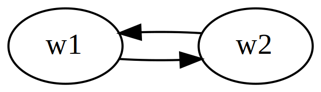 Then: \(M,w_1 \models \neg \mathsf{O}(\mathsf{O}p \rightarrow p)\). The reason is that \(M,w_2 \models \mathsf{O}p \wedge \neg p\).