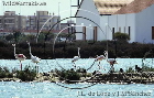 Flamingoes (Phoenicopterus ruber) and Ducks close to a city. "Santa Pola" Salt flats Natural Park. SPAIN / 8.6-1111